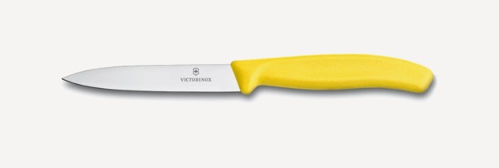 Dodání do 5 pracovních dnů nůž kuch.10cm žlutý hladký,špičatý VICTORINOX PeMi kód: 737916 EAN: 7613329191316 Nůž na zpracování ovoce a zeleniny nesmí chybět v žádné kuchyni. Tento nůž značky Victorinox s ostřím o délce 10 cm je ideální na krájení, čištění, loupání či dekorování. Má pohodlnou plastovou rukojeť ve žluté barvě 195 Kč Do košíku