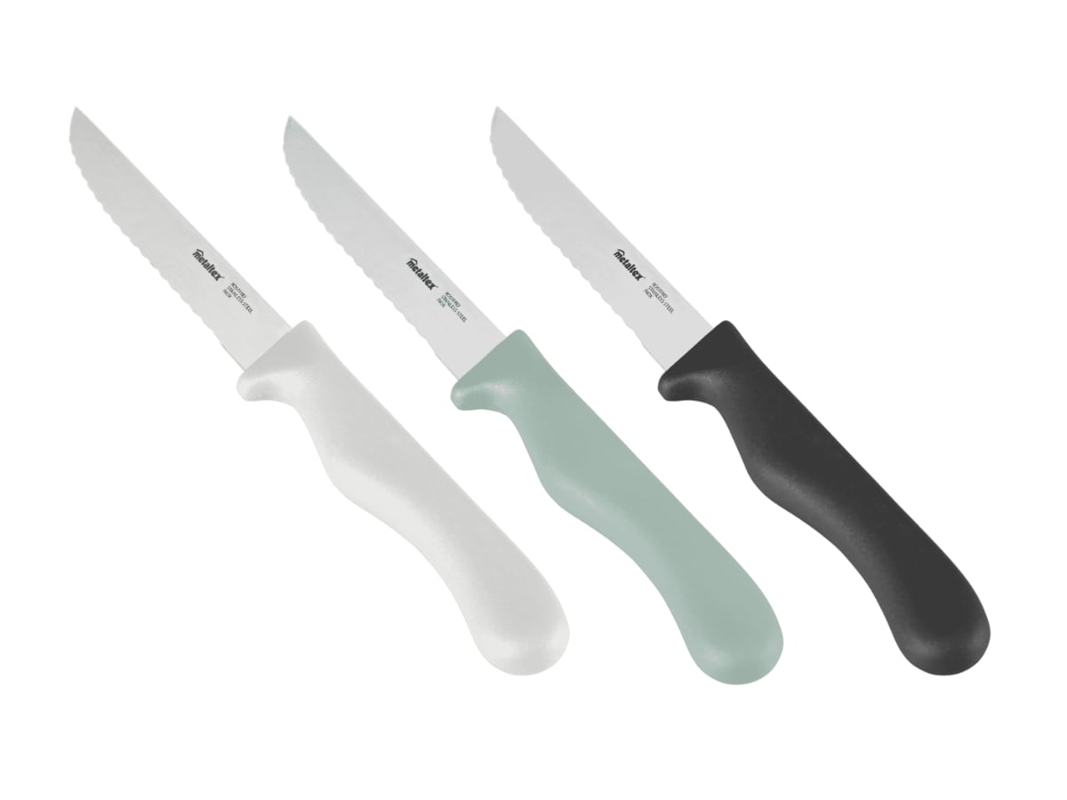 Dodání do 5 pracovních dnů nůž na rajčata 10cm zelený VICTORINOX PeMi kód: 732692 EAN: 7613329191484 Lehký a všestranný nůž s vroubkovaným ostřím, ideální na krájení rajčat, ovoce a zeleniny s jemnou slupkou. Čepel z nerezové oceli o délce 11 cm si snadno poradí s měkčími surovinami, kulatá špička zajišťuje bezpečnější manipulaci. Ergonomická plastová rukojeť dobře padne do ruky 195 Kč Do košíku