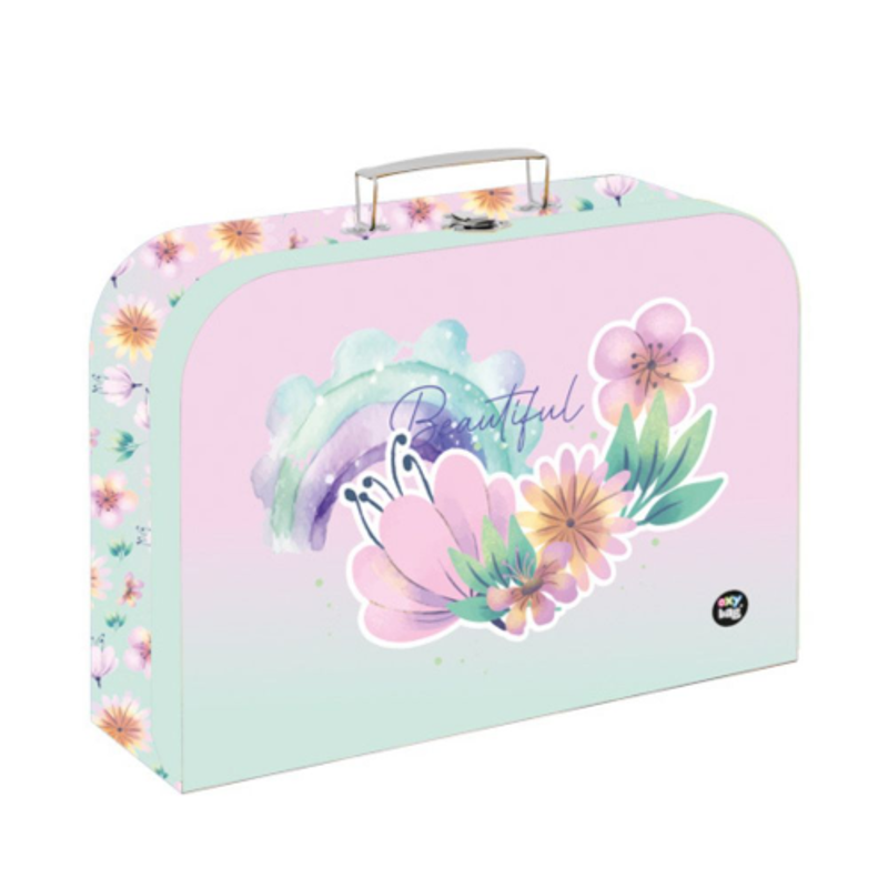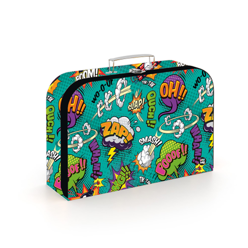 • Papírový dětský kufřík velikosti 35 cm Wild horses. Je vyroben z kvalitního pevného kartonu s vnitřní potiskem a kovovým uzavíráním s rukojetí. Je vhodný na školní potřeby, výtvarné potřeby, do kterého vejde i blok barevných papírů A4