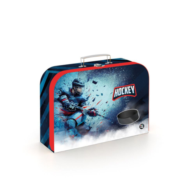 • Lamino kufřík na výtvarnou výchovu s motivem fotbalu. Do kufříku se vejde formát A4. Materiál: papír, lepenka, kovový zámeček, kovové nýty. Rozměry: 34 x 23 x 10 cm. Hmotnost: cca 450 g. Nosnost: max. 2 kg.