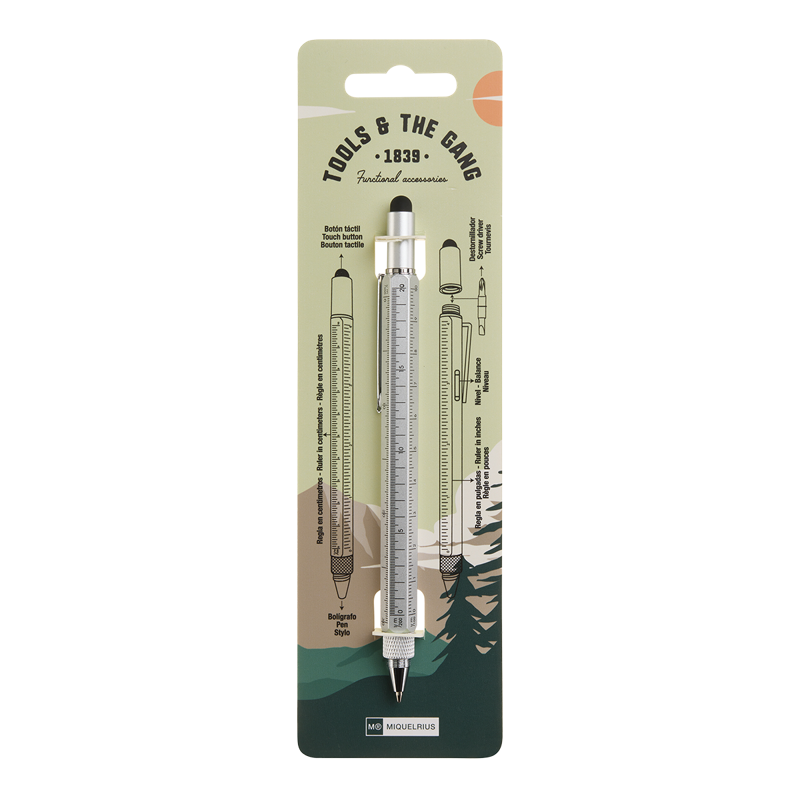 Skladem Kuličkové multifunkční pero Miquelrius stříbrné PeMi kód: 735552 EAN: 8422593120767 Multifunkční kuličkové pero spojuje elegantní psací nástroj s pěti užitečnými funkcemi, které využijete doma, v kanceláři i na cestách. Skvělé vychytávky, které máte vždy po ruce. Kromě kuličkového pera obsahuje pravítko v centimetrech i palcích, vodováhu, plochý a křížový šroubovák a dotykový 105 Kč Do košíku