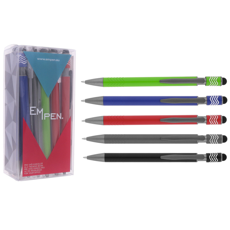 Dodání do 3 pracovních dnů Kuličkové pero touch pen SP061405 metal PeMi kód: 724013 EAN: 8595138567423 Kuličkové pero + touch pen pro dotykové mobilní telefony a tablety. Náplň: 5400155 Počet kusů v balení: 25 ks Dodáváme v mixu 5 barev dle skladové zásoby. Uvedená cena je za 1 ks. 20 Kč Do košíku