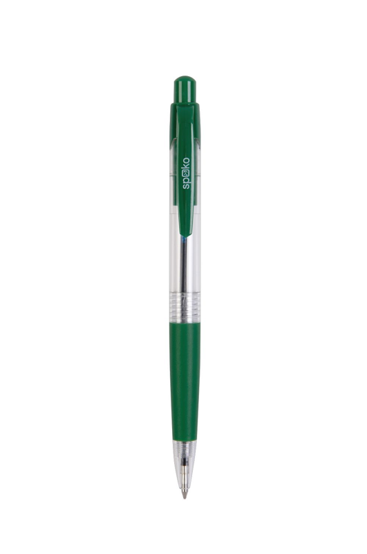 Skladem Kuličkové pero Spoko 0.5 zelené PeMi kód: 736449 EAN: 8594157933448 Stiskací kuličkové pero s průhledným tělem, které umožňuje kontrolovat množství náplně. Barevnost pera odpovídá barvě náplně. Tištěné logo na klipu. transparentní tělo v kombinaci se zelenou šířka stopy: 0,5 mm. Materiál: plast náhradní náplň typ X20. 7 Kč Do košíku