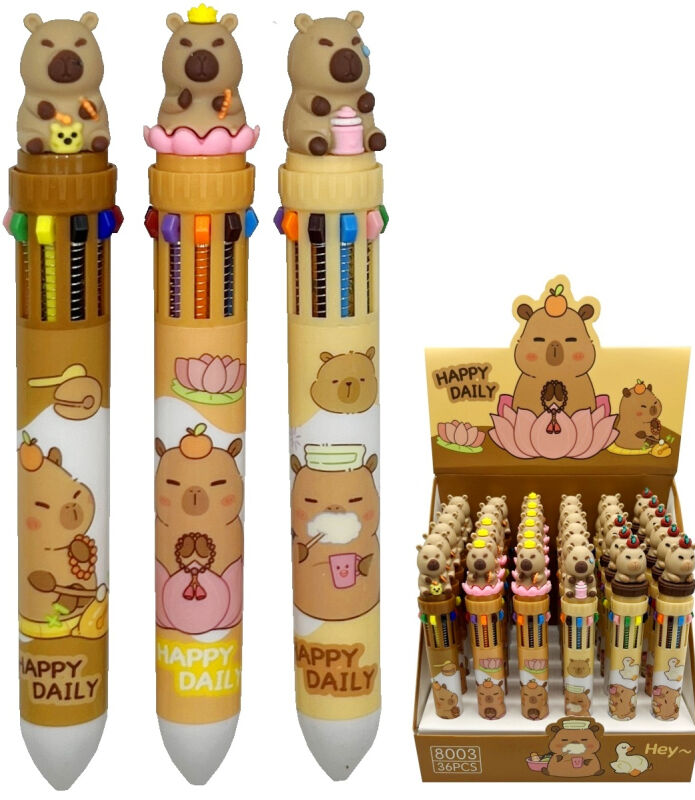 Skladem Vícebarevné kuličkové pero Capybara 10 barev PeMi kód: 733350 EAN: 6981688080031 Propiska Capybara 10-ti barevná. 36 Kč Do košíku