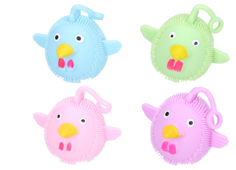 • Mačkací kuře 10 cm. Rozměry 10x9 cm. 12 ks display box. Více barevných variant. 4 varianty: růžová, zelená, modrá, fialová.