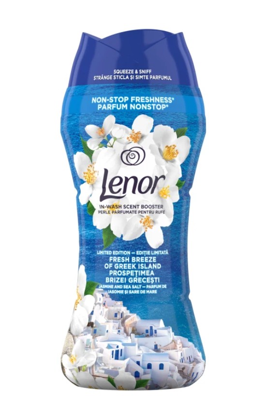 • Objevte vonné perličky Lenor limitované edice: Fresh Breeze of Greek Island s osvěžující vůní jasmínu a mořské soli. Zajišťují vašemu prádlu až 12 týdnů non-stop svěžesti při jeho uskladnění ve skříni. Použijte kolekci pro maximální svěžest: Používejte aviváž Lenor Fresh Breeze of