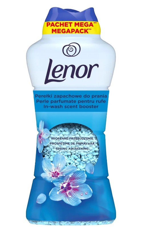 • Vonné perličky Lenor Spring Awakening 195 g s dlouhotrvající vůní jarních květin s tóny pačuli a bílého cedru. Stačí je nasypat do bubnu pračky přímo k prádlu. Nejoblíbenější vůně od Lenoru nyní i ve formě vonných perliček. Při uložení ve skříni vydrží vůně až 12 týdnů