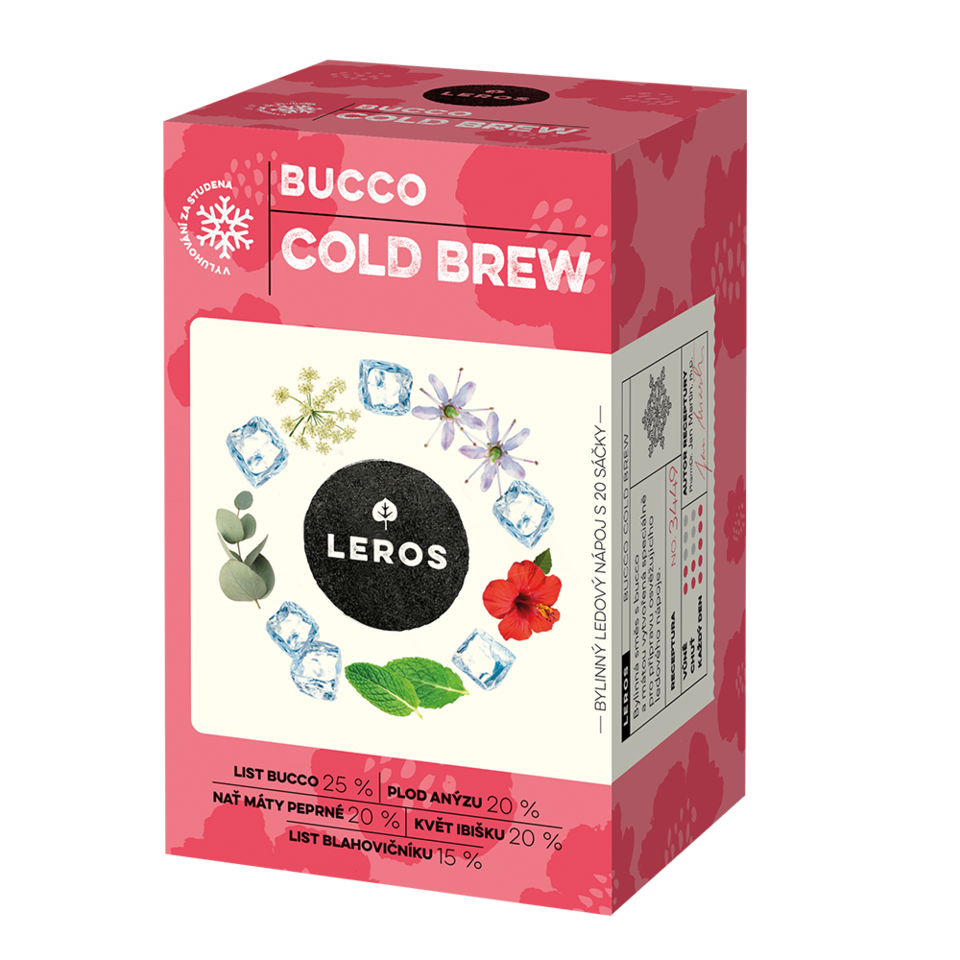 Dodání do 5 pracovních dnů LEROS Bylinná směs Bucco Cold Brew - nálev. sáčky (20 x 1,5 g) - na přípravu ledového čaje PeMi kód: 721796 EAN: 8594740103746 Cold Brew bylinkové směsi oceníte zejména během parných dní. Nálevový sáček není třeba louhovat v horké lázni, extrakce probíhá za studena. Ve směsi je velmi výrazný list keře bucco (buko), který se vyskytuje pouze v jižní Africe a nápoji propůjčuje zajímavou chuť připomínající černý rybíz nebo 69 Kč Do košíku