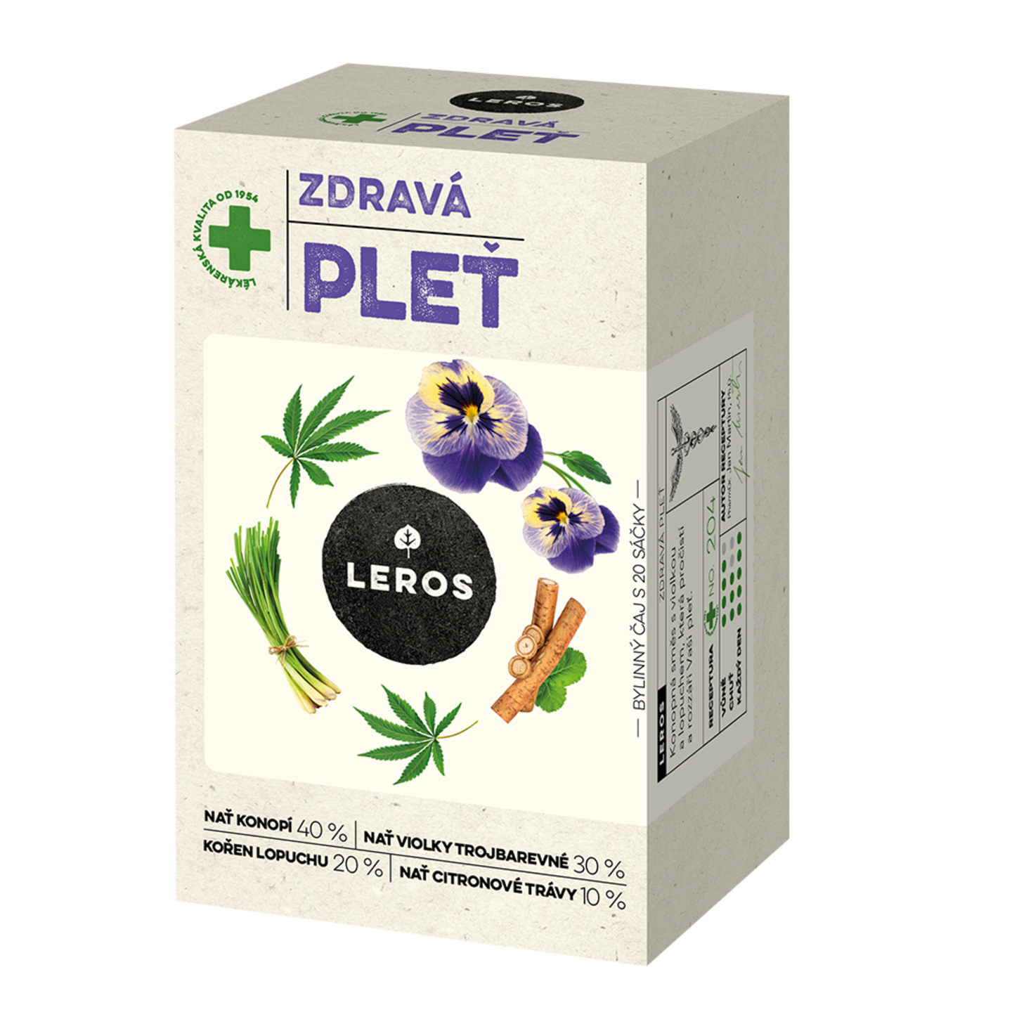 Dodání do 5 pracovních dnů LEROS Bylinný čaj Zdravá pleť - nálev. sáčky (20 x 1,5 g) - pročistí a rozzáří pleť PeMi kód: 733425 EAN: 8594740103135 Bylinný čaj LEROS Zdravá pleť nabízí vyváženou směs konopí, violky trojbarevné, lopuchu a citronové trávy, které přispívají k přirozené péči o pleť a její zdraví a jsou tradičně využívány při kožních potížích nebo při projevech stárnutí pokožky 75 Kč Do košíku