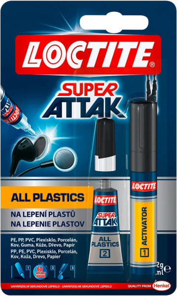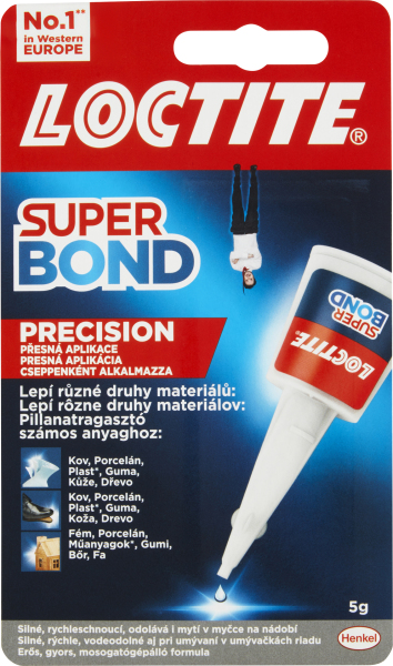 • Silné, rychleschnoucí lepidlo odolné vůči otřesům a vodě. Lepí různé druhy materiálů: kov, porcelán, plast (kromě PE a PP), guma, kůže, dřevo. Vlastnosti lepidla Loctite Super Bond: Přesná aplikace Silné, rychleschnoucí, odolává i mytí v myčce na nádobí