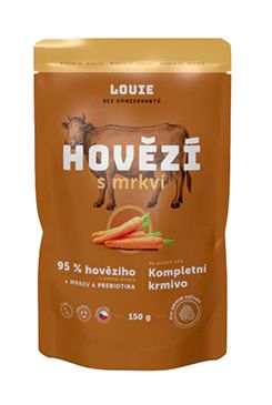 Skladem Louie Dog konz. Hovězí s mrkví a prebiotiky 200g PeMi kód: 741234 EAN: 8595174380000 Kompletní krmivo bez obilnin pro psy každého věku i plemene, hovězí s mrkví. Nabízí Vašemu miláčkovi možnost stravy z kvalitního masa (95 % v pevné složce). Pro podporu peristaltiky střev a simulaci minoritní rostlinné složky v potravě psů slouží příměs mrkve 40 Kč Do košíku