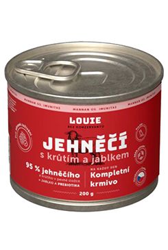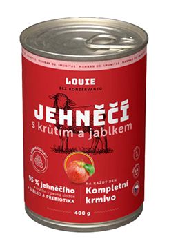 Skladem Louie Dog konz. Jehněčí s krůtím,jablk.prebiotiky 200g PeMi kód: 741239 EAN: 8595174380390 Kompletní krmivo bez obilnin pro psy každého věku i plemene, jehněčí s krůtím a jablkem. Nabízí Vašemu miláčkovi možnost stravy z kvalitního masa (95 % v pevné složce). Pro podporu peristaltiky střev a simulaci minoritní rostlinné složky v potravě psů slouží příměs jablek 40 Kč Do košíku