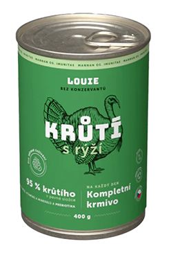 Skladem Louie Dog konz. Krůtí s rýží a prebiotiky 400g PeMi kód: 741253 EAN: 8595174345870 Kompletní krmivo bez obilnin pro psy každého věku i plemene, krůtí s rýží. Nabízí Vašemu miláčkovi možnost stravy z kvalitního masa (95 % v pevné složce). Pro podporu peristaltiky střev a simulaci minoritní rostlinné složky v potravě psů slouží příměs rýže 71 Kč Do košíku