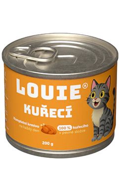 Skladem Louie Cat konz. Kuřecí s prebiotiky 200g PeMi kód: 741257 EAN: 8595174380581 Kompletní krmivo bez obilnin pro kočky každého věku i plemene, 100 % kuřecí. Nabízí Vašemu miláčkovi možnost stravy z kvalitního masa (100 % v pevné složce) s prebiotiky pro podporu peristaltiky střev. Krmivo neobsahuje žádné konzervanty, barviva, pouze 100 % masa, prebiotika, vitamíny a 40 Kč Do košíku