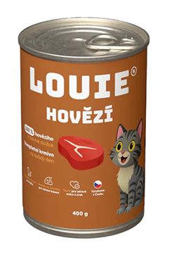 Skladem Louie Cat konz. Hovězí s prebiotiky 400g PeMi kód: 741261 EAN: 8595174380628 Kompletní krmivo bez obilnin pro kočky každého věku i plemene, 100 % hovězí. Nabízí Vašemu miláčkovi možnost stravy z kvalitního masa (100 % v pevné složce) s prebiotiky pro podporu peristaltiky střev. Krmivo neobsahuje žádné konzervanty, barviva, pouze 100 % masa, prebiotika, vitamíny a 76 Kč Do košíku