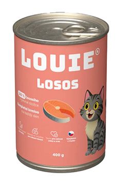 Skladem Louie Cat konz. Losos s prebiotiky 200g PeMi kód: 741258 EAN: 8595174381595 Kompletní krmivo bez obilnin pro kočky každého věku i plemene, 100 % losos. Nabízí Vašemu miláčkovi možnost stravy z kvalitního masa (100 % v pevné složce) s prebiotiky pro podporu peristaltiky střev. Krmivo neobsahuje žádné konzervanty, barviva, pouze 100 % masa, prebiotika, vitamíny a 40 Kč Do košíku