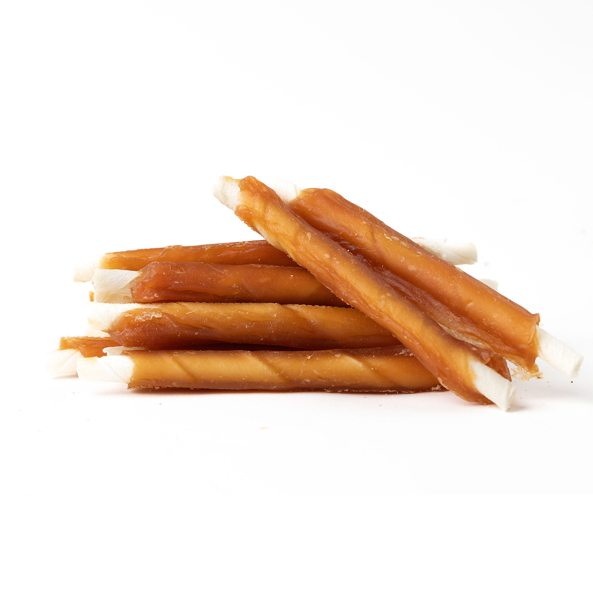 Přírodní masová tyčka z hovězí kůže obtočená plátkem lahodného kuřecího masa.