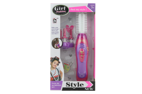 • Plastový toaletní stolek s příslušenstvím. Obsahuje fén na baterie, korále, gumičky, plastové flakónky, rtěnku (plast), lak na nehty (plast), hřeben a další doplňky. Stolek po stisknutí tlačítka nad zrcadlem začne hrát melodii a svítit. Součástí je také plastová stolička