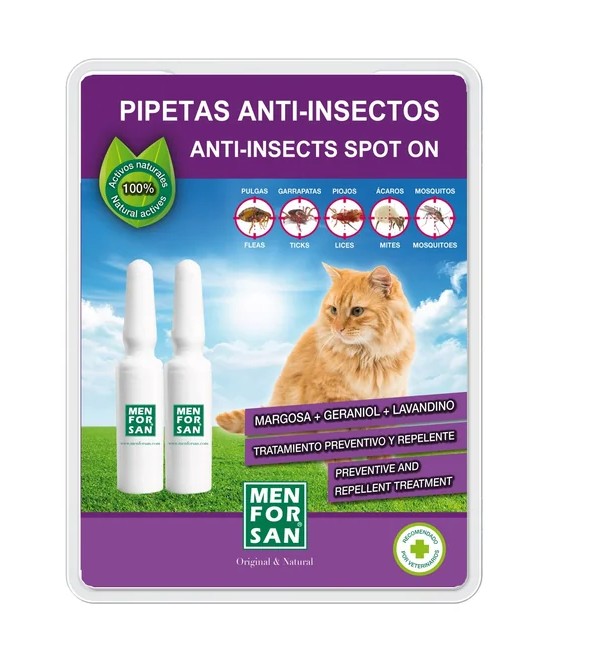 • Menforsan Přírodní repelentní šampon je účinným bojovníkem proti komárům, blechám, klíšťatům, roztočům, vším a štěnicím. Parazity dokáže odstranit během mytí srsti. Obsažený přírodní extrakt z citronely navíc působí jako přirozený insekticid a poskytne kočičímu kožíšku po koupeli repelentní