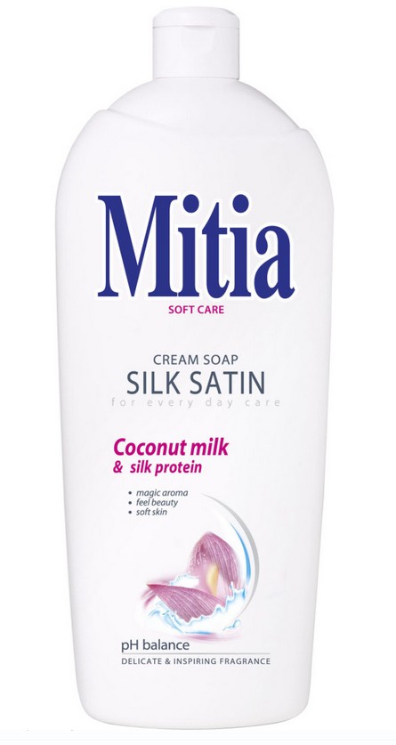 Skladem Mitia Silk Satin tekuté mýdlo, 1 l PeMi kód: 265904 EAN: 8595025810403 Jeho jemné krémové složení společně s extraktem z kokosového mléka, který pokožku vyživuje a zvláčňuje, a hedvábnými proteiny s hydratačními účinky pomáhají zachovat pokožku hebkou a vláčnou. 57 Kč Do košíku