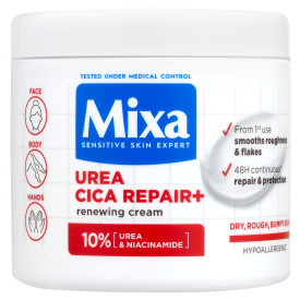 Skladem Mixa tělové mléko 400ml Cica Urea Repair PeMi kód: 716221 EAN: 3600551175904 Mixa tělové mléko Urea Cica Repair+ pro velmi suchou, hrubou pokožku s jemným složením obohaceným o ureu a niacinamid je vhodná pro citlivou pleť. Její hutná, a přesto lehká zklidňující textura poskytuje až 48h obnovu a ochranu. Urea pomáhá zjemnit a regenerovat suchou a hrubou pokožku 217 Kč Do košíku
