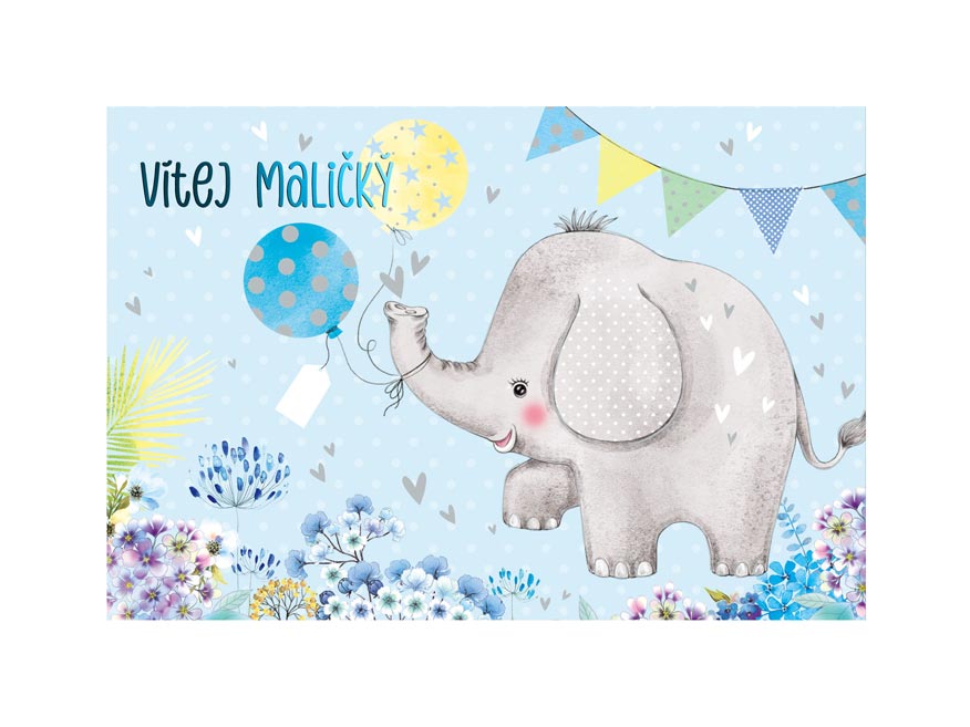 Dodání do 3 pracovních dnů Přání k narození miminka CN-827 PeMi kód: 724226 EAN: 8595138580118 Přání k narození miminka. Krásné přání k narození chlapečka s obrázkem slona. Přání, které udělá radost a bude se určitě líbit. <strong>Text na přední straně:</strong> Vítej maličký <strong>Text uvnitř přání:</strong> Gratulujeme Jen samou radost a spoustu krásných 40 Kč Do košíku