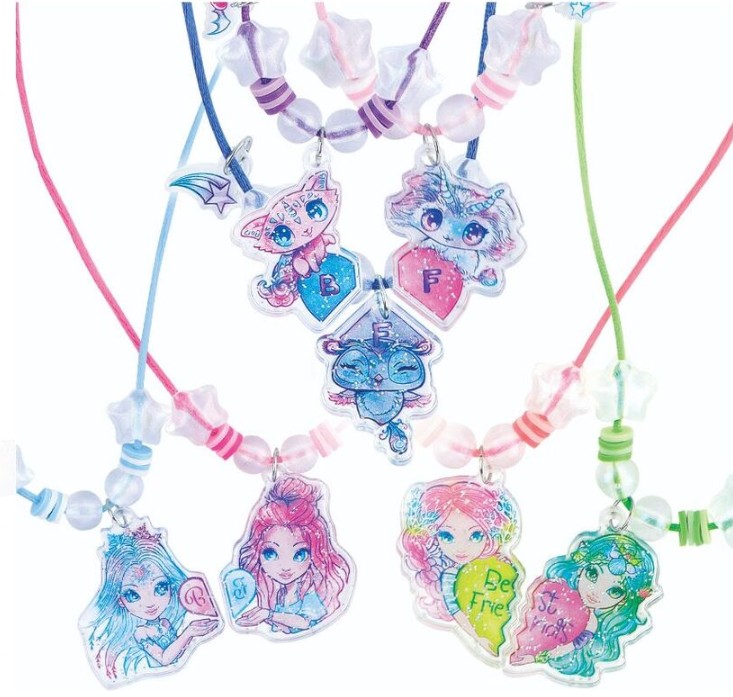Nebulous Stars Náhrdelníky přátelství set Vyrob si náhrdelníky přátelství. Obsah balení: 7 velkých třpytivých akrylových přívěsků 7 malých akrylových přívěsků 98 různých korálků 14 spojovacích kroužků 7 barevných hedvábných provázků arch s lepícími kamínky barevný návod.