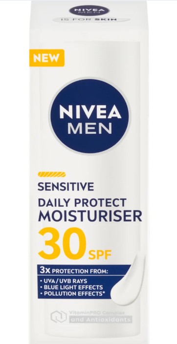 Skladem Nivea Men Sensitive ochranný pleťový krém SPF30 50ml PeMi kód: 722667 EAN: 9005800389295 Hlavní vlastnosti Trojitá ochrana pleti – filtr proti UVA/UVB paprskům, ochrana proti modrému světlu a znečištění prostředí. Obsah vitamínového komplexu – vitamín E a provitamin B5 podporují regeneraci a hloubkovou hydrataci 325 Kč Do košíku