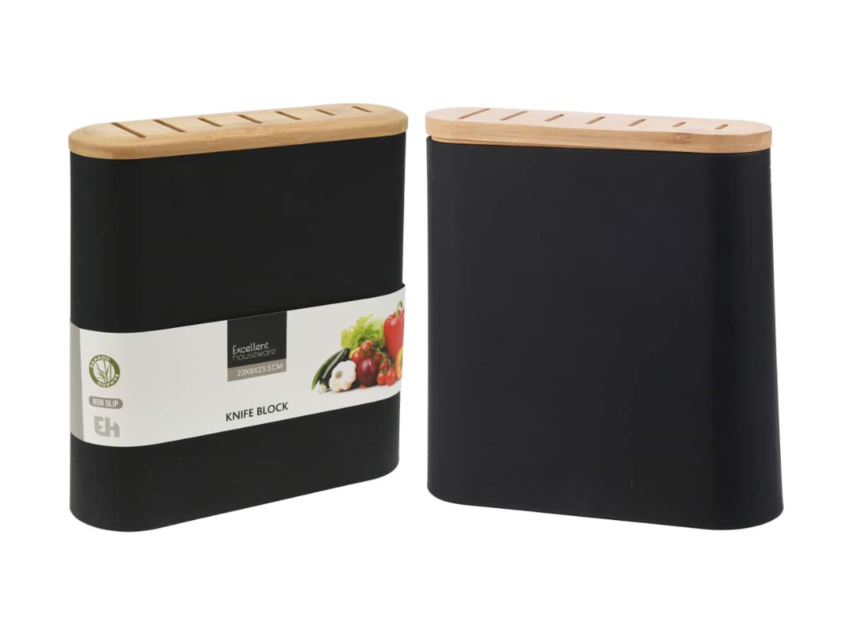 Dodání do 5 pracovních dnů blok na nože 23x8x23,5cm ČERNÝ PeMi kód: 712182 EAN: 8721037034456 Blok pro 7ks nožů,černý+přír.dřevo 364 Kč Do košíku