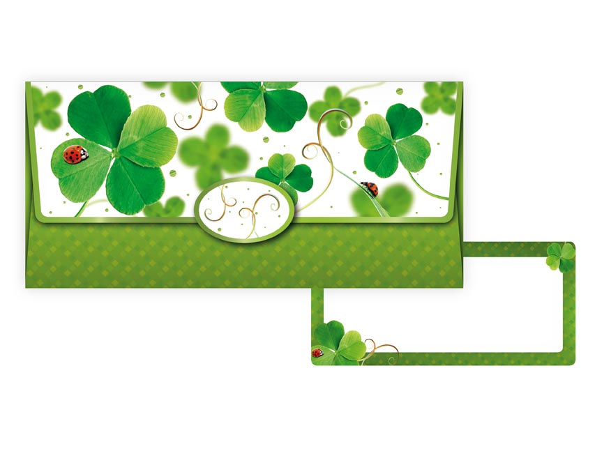• Obálka na peníze – se čtyřlístky pro štěstí Darujte peníze s úsměvem a radostí! Obálka je laděná do svěžích zelených tónů, zdobená čtyřlístky a beruškami – tradičními symboly štěstí a pohody. Skvěle se hodí k narozeninám, svátku, promoci i dalším příležitostem, kdy chcete předat nejen dárek,