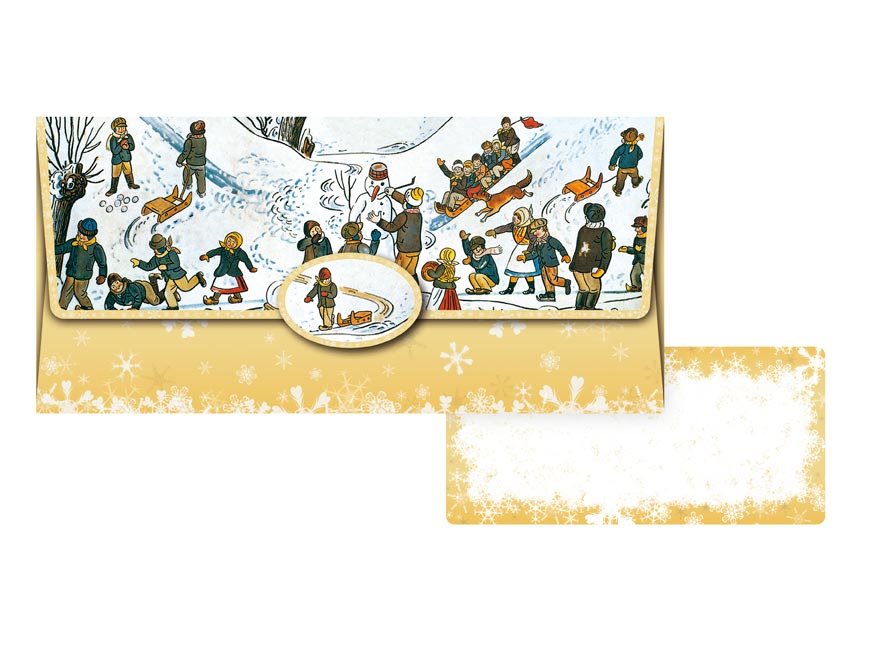• Dárková obálka na peníze s vánočními motivy Josefa Lady a uzavíratelnou klopou. Darujte svým blízkým dárek k Vánocům v podobě obálky na peníze. Do obálky lze vložit peníze nebo dárkový poukaz. Uvnitř je kartička bez textu, na kterou můžete napsat věnování