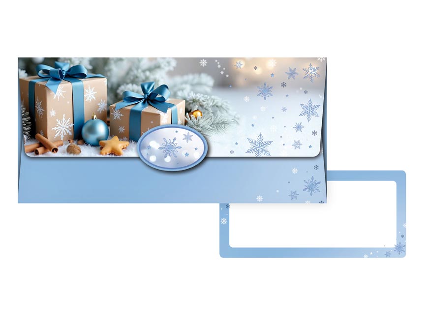 • Vánoční obálka na peníze – když chcete darovat stylově Peníze nejsou neosobní – stačí je darovat v krásné vánoční obálce na peníze. A přesně proto je tu elegantní obálka – zimní design, decentní modré tóny, jemné vločky a pocit výjimečnosti hned na první pohled
