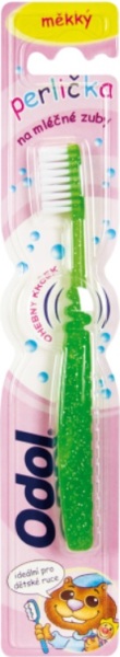 • Perlička zubní kartáček na mléčné zuby do 0 do 6 let věku. FLEX speciální odpružení krčku absorbuje nadměrný tlak či nárazy a chrání tak před poraněním dásní.