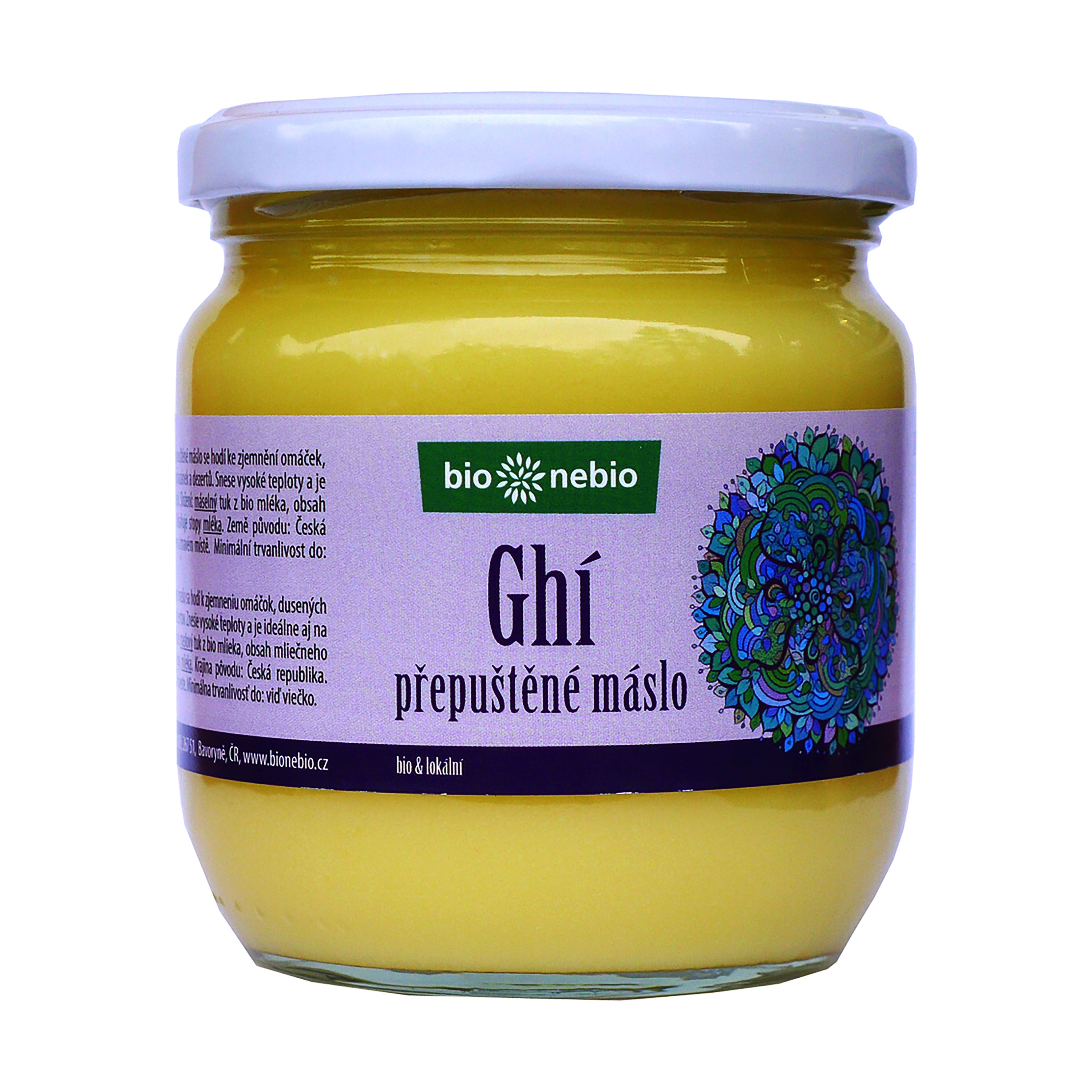 Dodání do 3 pracovních dnů Máslo přepuštěné ghí ČESKÉ 425 ml BIO BIO NEBIO PeMi kód: 712768 EAN: 8594052880427 Bezvodný MLÉČNÝ TUK*. *produkt kontrolovaného ekologického zemědělství<p><strong>Kalorická hodnota/energie (na 100ml):</strong>3678kJ/895kcal. Tuky: 99,4 g. z toho nasycené mastné kyseliny: 58,6 g. Sacharidy: 0,5 g. z toho cukry: 0,3 g. Bílkoviny: 0,5 g 372 Kč Do košíku