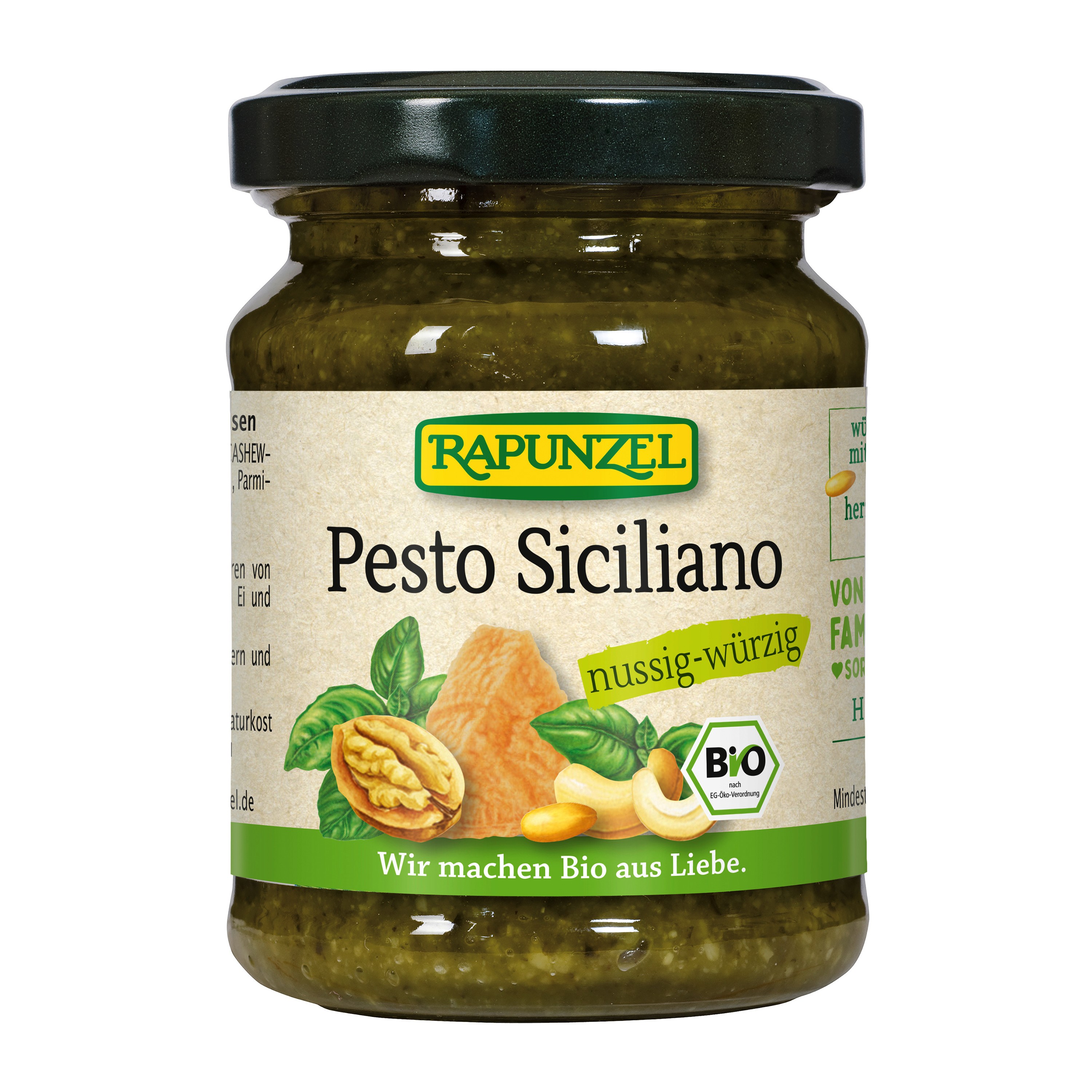 Dodání do 3 pracovních dnů Pesto siciliano 120 g BIO RAPUNZEL PeMi kód: 718977 EAN: 4006040755791 Extra panenský olivový olej*, bazalka* 25 %, VLAŠSKÉ OŘECHY* 13 %, KEŠU OŘECHY* 11 %, tvrdé sýry 7 % (OVČÍ PECORINO*, PARMEZÁN*), piniové oříšky* 4 %, mořská sůl, česnek*. Pasterováno. *produkt kontrolovaného ekologického zemědělství<p><strong>Kalorická hodnota/energie (na 114 Kč Do košíku