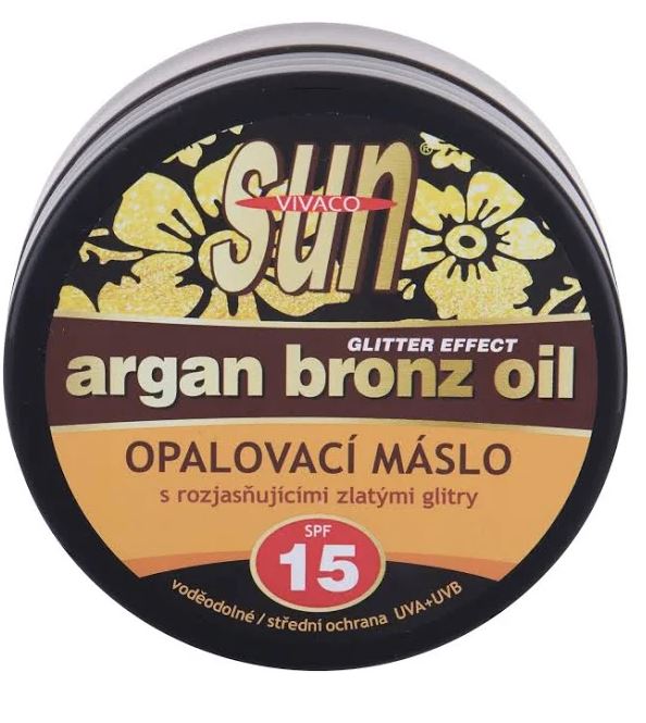 • SUN Bronz opalovací máslo obsahuje vzácný bio-arganový olej a betakarotenem pro intenzivní, rychlé a dlouhotrvající opálení. Voděodolný, snadno se roztírá. Vhodný pro pokožku přivyklou slunečnímu záření. Výhody výrobku Vhodný pro pokožku přivyklou slunečnímu záření