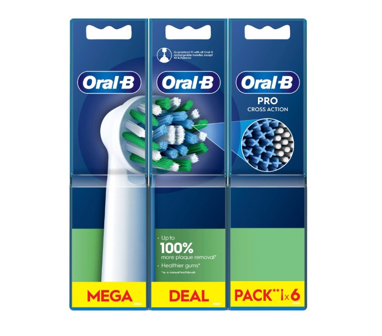 Skladem Oral-B Pro Cross Action Kartáčkové hlavy 6 ks PeMi kód: 716378 EAN: 8006540847879 Náhradní kartáčkové hlavy V porovnání s běžným manuálním zubním kartáčkem odstraňuje až o 100 % více zubního plaku a zajišťuje zdravější dásně Díky technologii CleanMaximiser zelená vlákna zežloutnou, když je čas vyměnit kartáčkovou hlavu za novou Zkosená vlákna pod úhlem 16 stupňů 786 Kč Do košíku