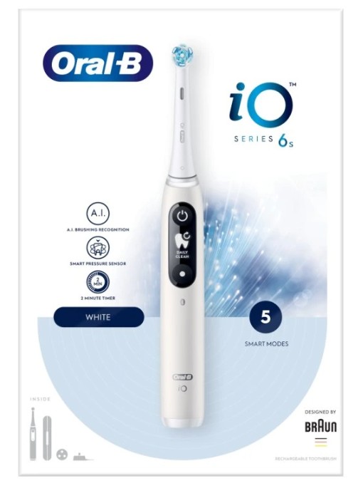 Skladem Oral-B el ZK Series iO 6 White PeMi kód: 733082 EAN: 4210201438069 Inovativní systém magnetického pohonu iO přenáší čisticí energii jemných mikrovibrací na konce vláken, která klouzají od zubu k zubu a čištění je tak účinné a příjemné. Zdokonalený chytrý senzor tlaku chrání dásně a signalizuje, kdy si zuby čistíte správně 4 334 Kč Do košíku