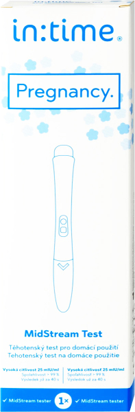 Skladem Primeros Intime těhotenský test MidStream, 1 ks PeMi kód: 666831 EAN: 8594068384025 intime těhotenský test MidStream, 1 ks zdravotnický prostředek Intime Pregnancy těhotenský test MidStream pro domácí použití. Slouží pro detekci raného stadia těhotenství na základě přítomnosti lidského hormonu choriongonadotropinu (hCG) v moči, který je produkován tělem během 109 Kč Do košíku