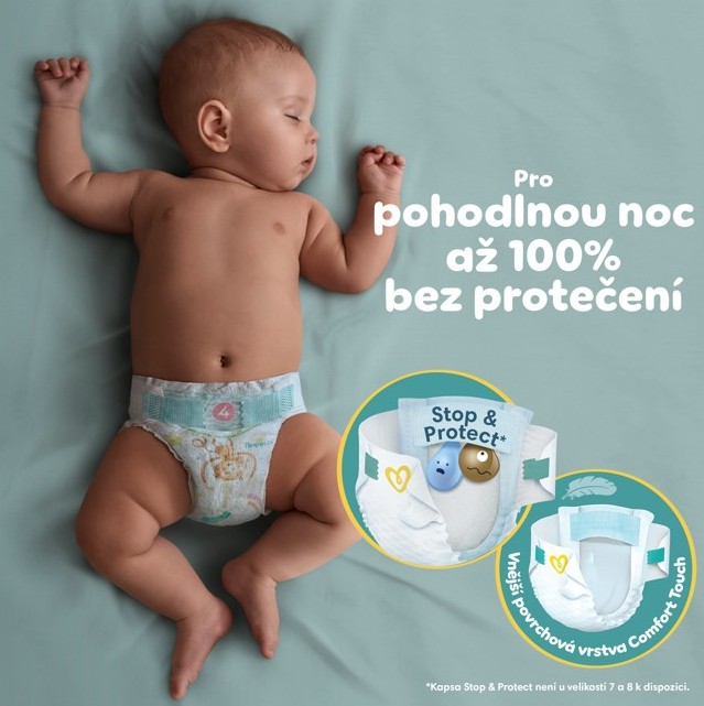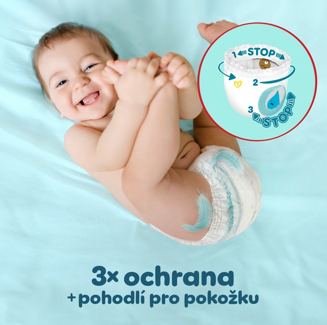 Dopřejte svému děťátku nejlepší pohodlí a ochranu od Pampers s plenkovými kalhotkami Pampers Premium Care.