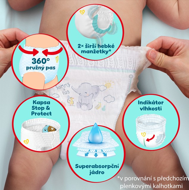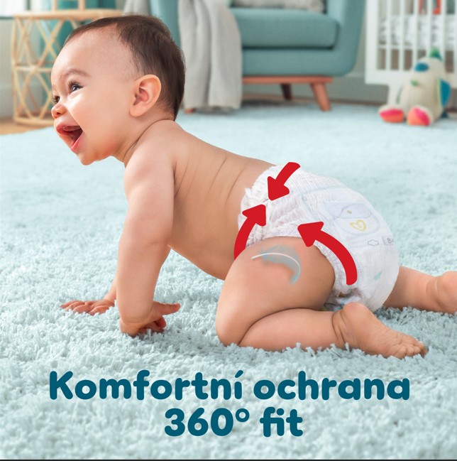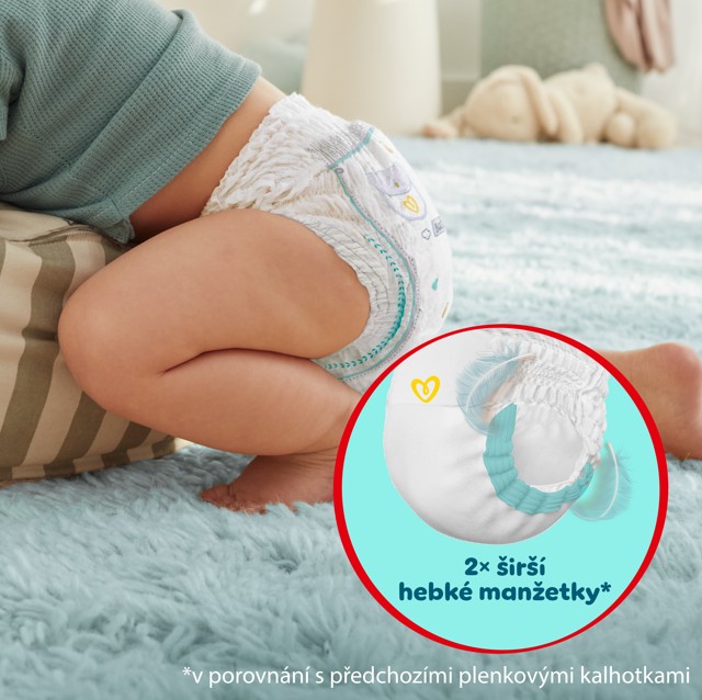 Když začne být vaše děťátko aktivnější, budete potřebovat takovou plenku, která mu pohodlně padne a dokáže je spolehlivě chránit při každém pohybu. Proto tu jsou plenkové kalhotky Pampers Premium Care Pants: jsou vyrobené z hebkých materiálů, mají dokonale padnoucí pružný pas, díky kterému se přizpůsobují tvaru těla vašeho neposedného děťátka a poskytují tak nejlepší pohodlí a ochranu od Pampers.