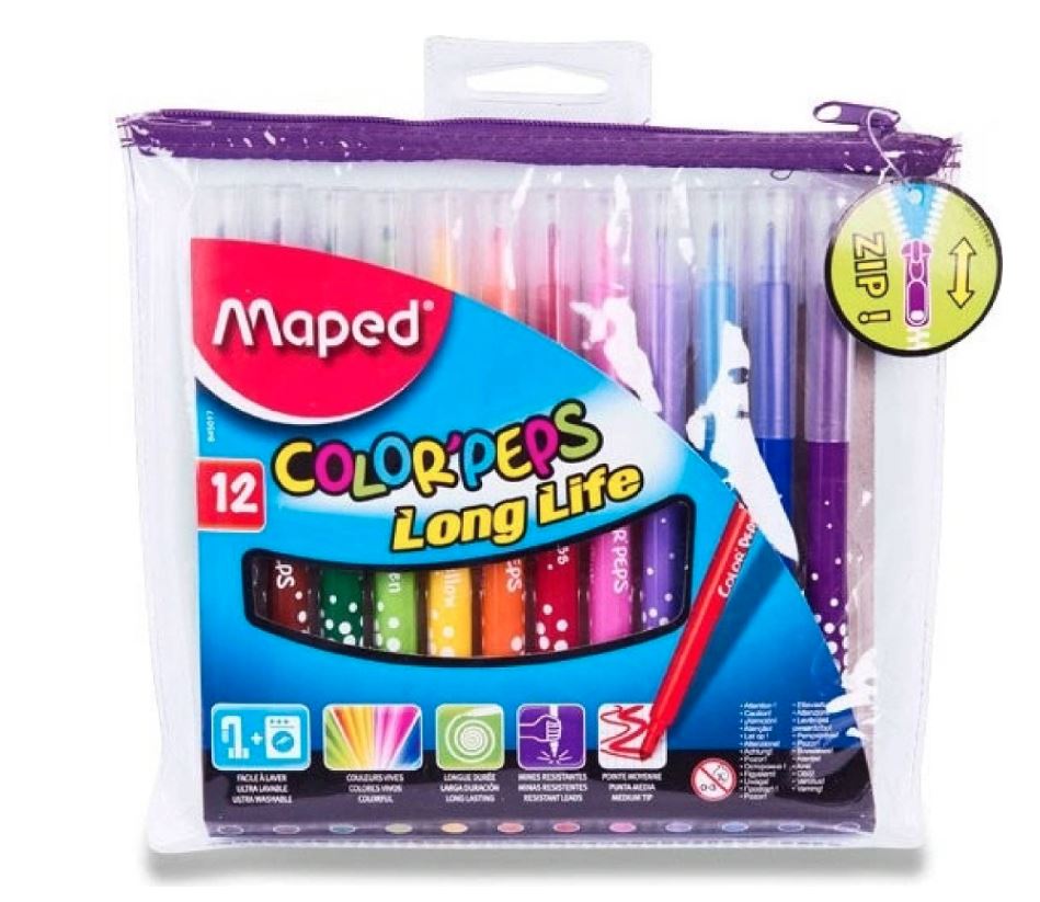 Sleva 9% Skladem 20 ks. Maped Color Peps Long Life 5017 pouzdro na zip 12 ks PeMi kód: 714322 EAN: 3154148450177 Publikace: Maped - Fixy Color´ Peps 12 ks Souprava barevných fixů se snadno vypratelným a omyvatelným inkoustem. Zářivé barvy. Hrot odolný proti zatlačení či poškození, účinný uzávěr. Dlouhá životnost. Trojúhelníkový úchop pro lepší a pohodlnější držení 109 Kč 99 Kč Do košíku