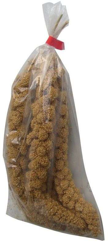 • Senegalské proso v klasech k ozobu pro drobné exotické ptactvo, andulky a malé papoušky. Jsou výbornou pochoutkou, ale také krmivem, které Vašemu miláčkovi dodává důležité vitamíny a minerály pro zdravý a vitální život