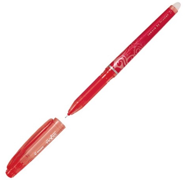 Skladem FriXion Pro, červený PeMi kód: 639645 EAN: 4902505043628 Speciální inkoust – napsaný text lze vymazat a znovu přepsat na tomtéž místě tolikrát, kolikrát chcete. Text zneviditelníte zahřátím na 65 °C, které vznikne třením („gumováním“) plastového zakončení rolleru na papíře. Znovu se objeví při teplotě nižší než -15 °C. Pero má výměnnou náplň 59 Kč Do košíku