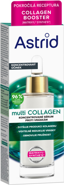 Skladem Astrid Multicollagen pleťové sérum proti vráskám 30 ml PeMi kód: 722559 EAN: 8592297011682 Pleťové sérum Astrid Multicollagen je koncentrovaný přípravek v lahvičce o objemu 30 ml, navržený pro boj s prvními známkami stárnutí pleti – jemnými linkami, vráskami i ztrátou elasticity . Klíčové vlastnosti 96 % přírodní složení – obsah převážně přírodních 251 Kč Do košíku