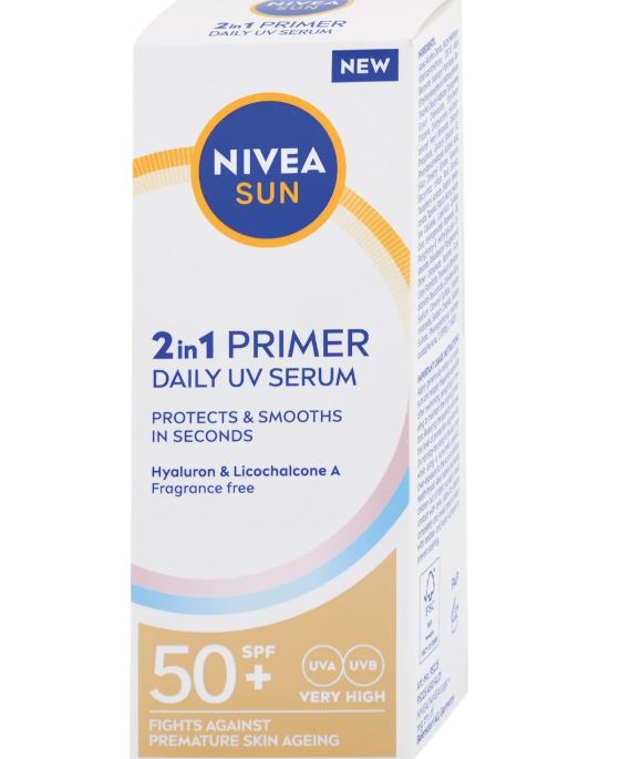 Skladem Nivea Sun pleť UV sérum 2v1 30ml SPF50+ PeMi kód: 715765 EAN: 4006000128689 NIVEA Sun 2v1 pleťové sérum s vysokým ochranným faktorem SPF 50+ poskytuje účinnou ochranu před UVA a UVB zářením i před škodlivým modrým světlem (HEVL), které přispívá k předčasnému stárnutí pleti. Sérum má lehkou, nemastnou texturu, která se rychle vstřebává, nezanechává bílé stopy a 333 Kč Do košíku