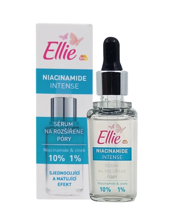 Skladem Ellie sérum 30ml niacinamid a zinek PeMi kód: 739586 EAN: 8590273648150 Sérum na rozšířené póry. Ellie pleťové sérum Niacinamide Intense zjemňuje a vyhlazuje pleť. Účinná kombinace niacinamidu a zinku rozjasňuje pokožku, snižuje výskyt nerovnosti textury pleti a rozšířených póru, omezuje množení bakterií a redukuje projevy akné 134 Kč Do košíku