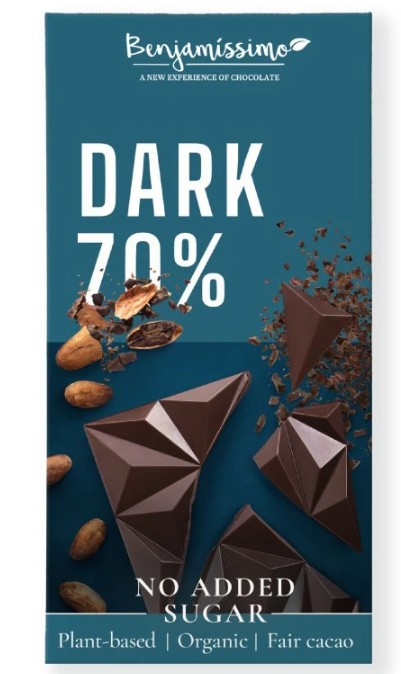 Dodání do 3 pracovních dnů Čokoláda tmavá 70 % bez přidaného cukru 60 g BIO BENJAMÍSSIMO PeMi kód: 719009 EAN: 3800236132394 Kakaová hmota*, sladidlo: erythritol*, kakaové máslo*, slunečnicový lecitin*, vanilka bourbon*, himálajská sůl. Obsah kakaové sušiny min. 70 %. Může obsahovat stopy SKOŘÁPKOVÝ PLODŮ a SEZAMU. Obsahuje přirozeně se vyskytující cukry 88 Kč Do košíku