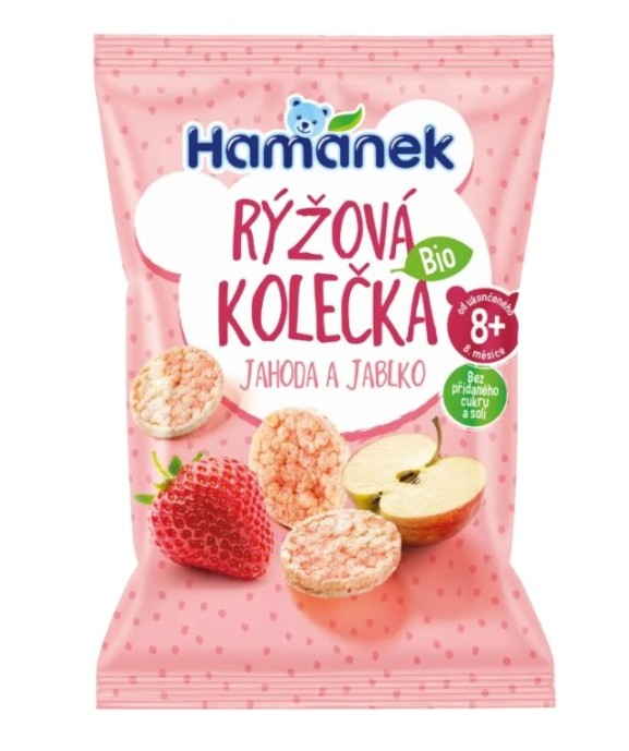 Skladem Hamánek rýžová kolečka 35g jah jabl PeMi kód: 719169 EAN: 8595081303628 Bio rýžová kolečka Hamánek s příchutí jahoda a jablko o váze 35 g jsou vyrobená z bio pufované rýže, obsahují bio prášek z jahody a jablka. Kolečka mají příjemnou ovocnou chuť. Díky pohodlnému kulatému malému tvaru se snadno drží v malé dětské ruce - ať už doma, na cestách nebo na procházce 56 Kč Do košíku