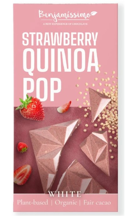 Dodání do 3 pracovních dnů Tabulka kakaová bílá jahoda-quinoa 60 g BIO BENJAMÍSSIMO PeMi kód: 719493 EAN: 3800236132295 Růžové potěšení: Lahodná čokoláda z kokosového krému rozpouštějící se na jazyku. Zajímavá chuť i vzhled Skvěle vyvážená chuť díky mrazem sušeným jahodám a křupavému popcornu z quinoy. Vyrobeno v "bean to bar" manufaktuře z prémiových surovin v Bulharsku. 95 Kč Do košíku